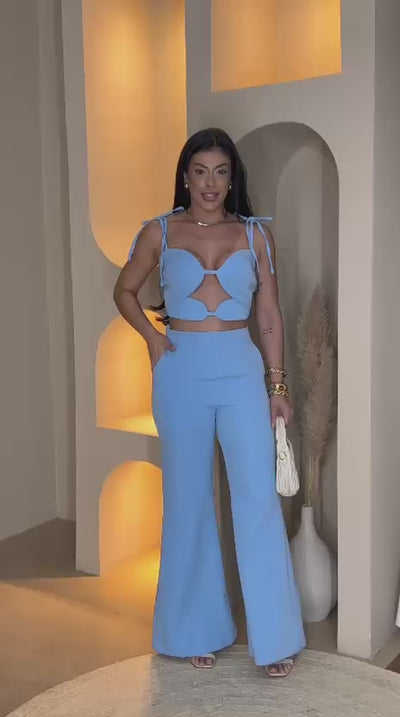 O Conjunto Mônaco é a escolha ideal para mulheres que desejam unir elegância, conforto e estilo. Composto por um top estruturado com alças projetadas e recortes modernos que valorizam a silhueta, e uma calça pantalona de caimento impecável, essa peça proporciona um visual sofisticado e super atual.