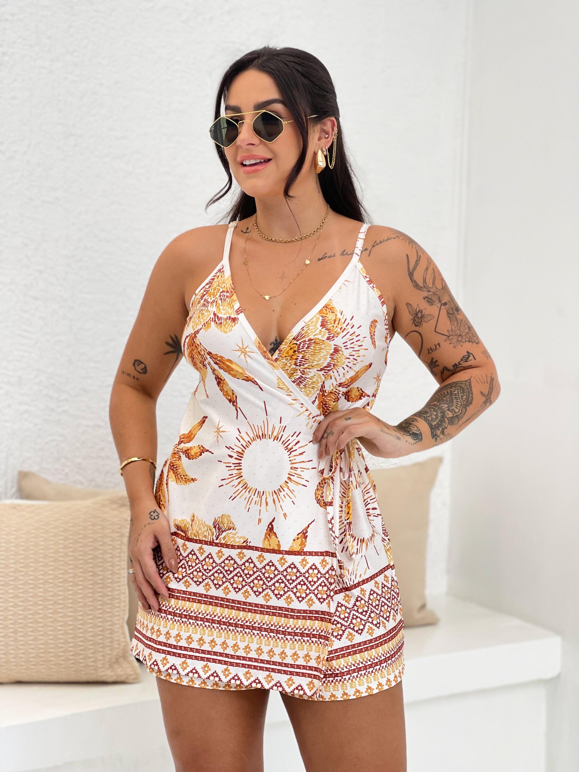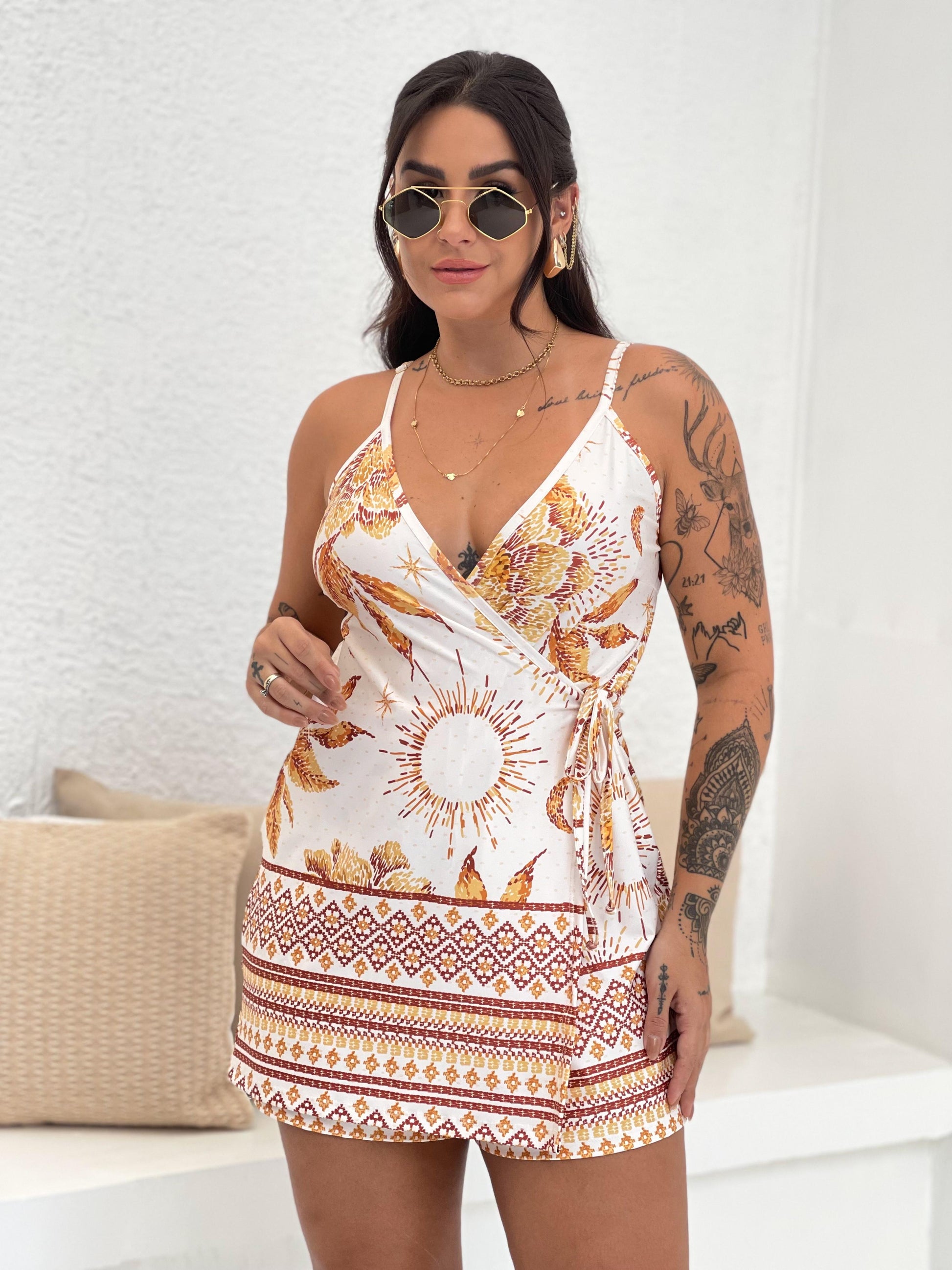 • Versátil para o dia a dia: Com seu tecido leve e estampa alegre, o Macaquinho é ideal para usar em passeios casuais, almoços ao ar livre e até mesmo viagens para destinos tropicais.